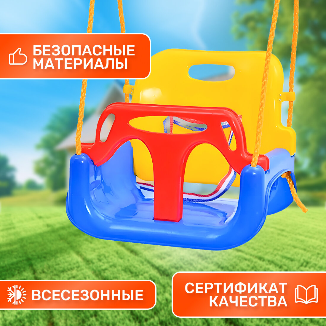 Детские качели кресло Капризун 3 в 1. Подвесные качели трансформер для улицы и дома, цвет красный, желтый, синий