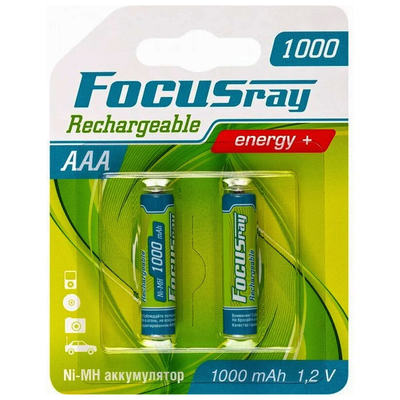 Купить Ni-Mh аккумуляторы Focusray 625860, AAA, HR03, 1000 мАч, 2 штуки