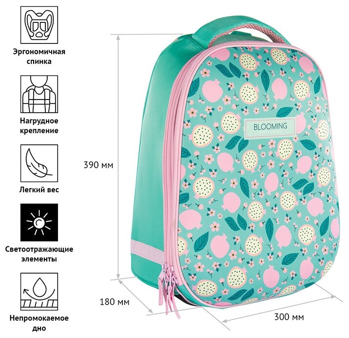 Спейс Ранец ArtSpace 2 отделения School Friend Fruits 39x30x18 см Бирюзовый интересное: