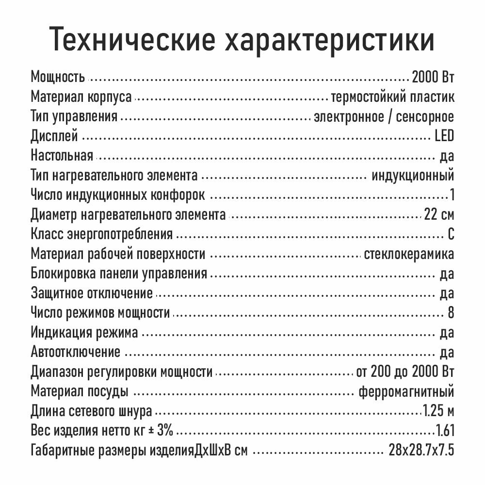 | Дополнительные функции | Плавный регулятор мощности и нагрева, / быстрый нагрев / индукционная плита |