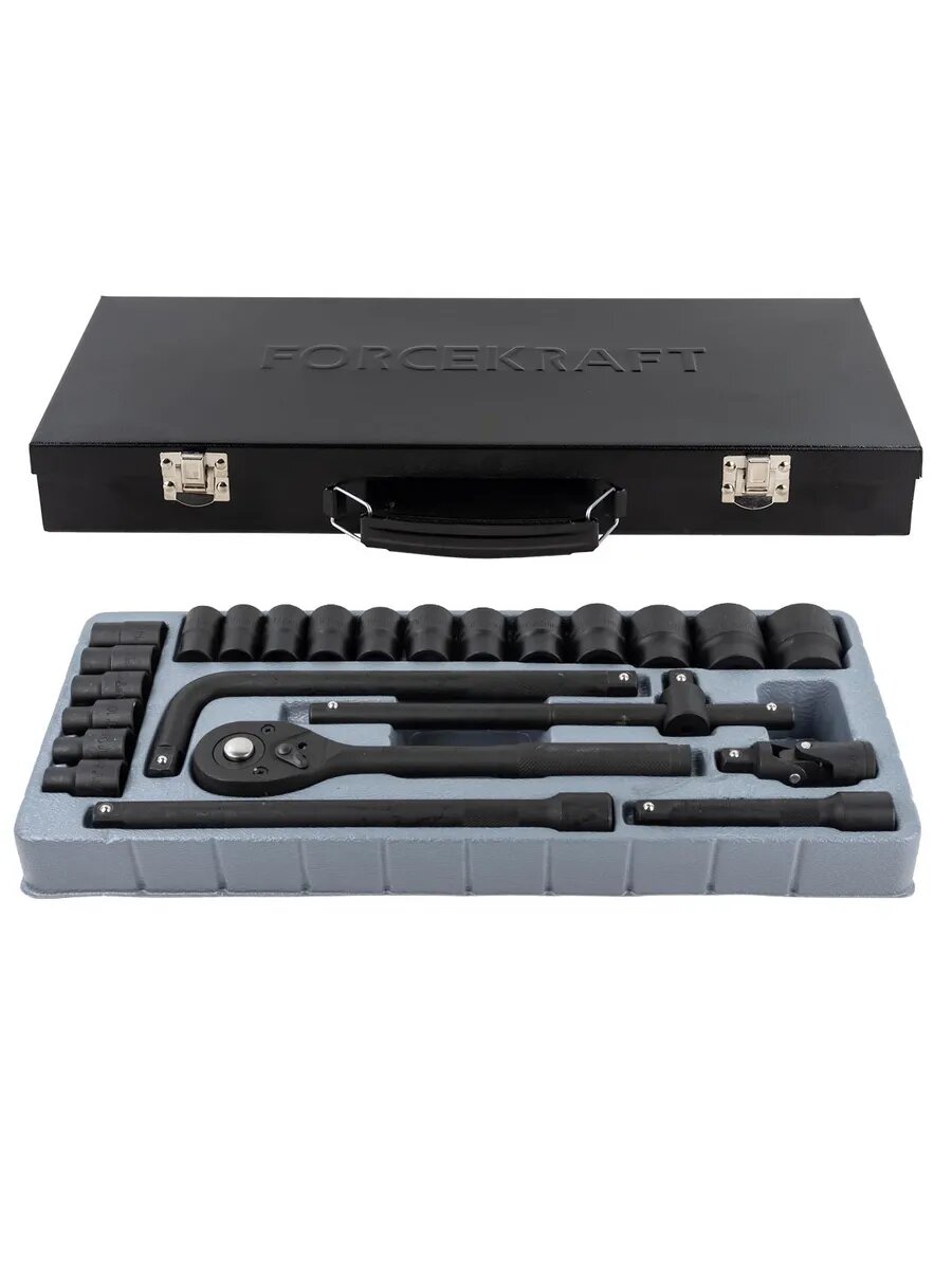 FORCEKRAFT FK62125MPB Набор инструментов ударных 21 пр, 3/4, 6гр: 17,19,21,22,24,27,30,32,34,35,36,36 мм, 12 гр: 38,41,46,50 мм, в метал. кейсе