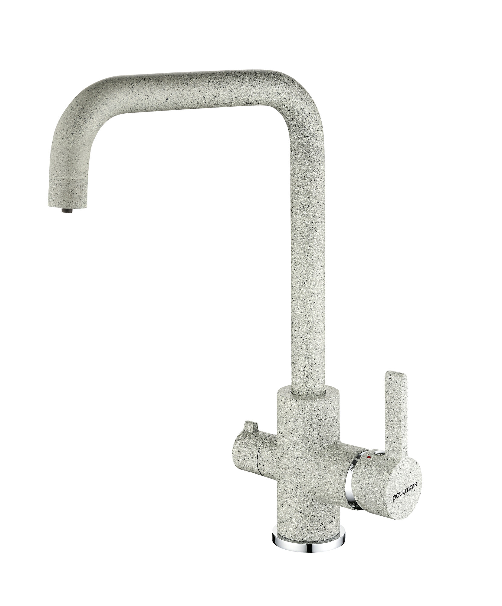 Смеситель для кухни Paulmark LOGAS серый металлик, с подключением фильтра питьевой воды, Lo213021-402