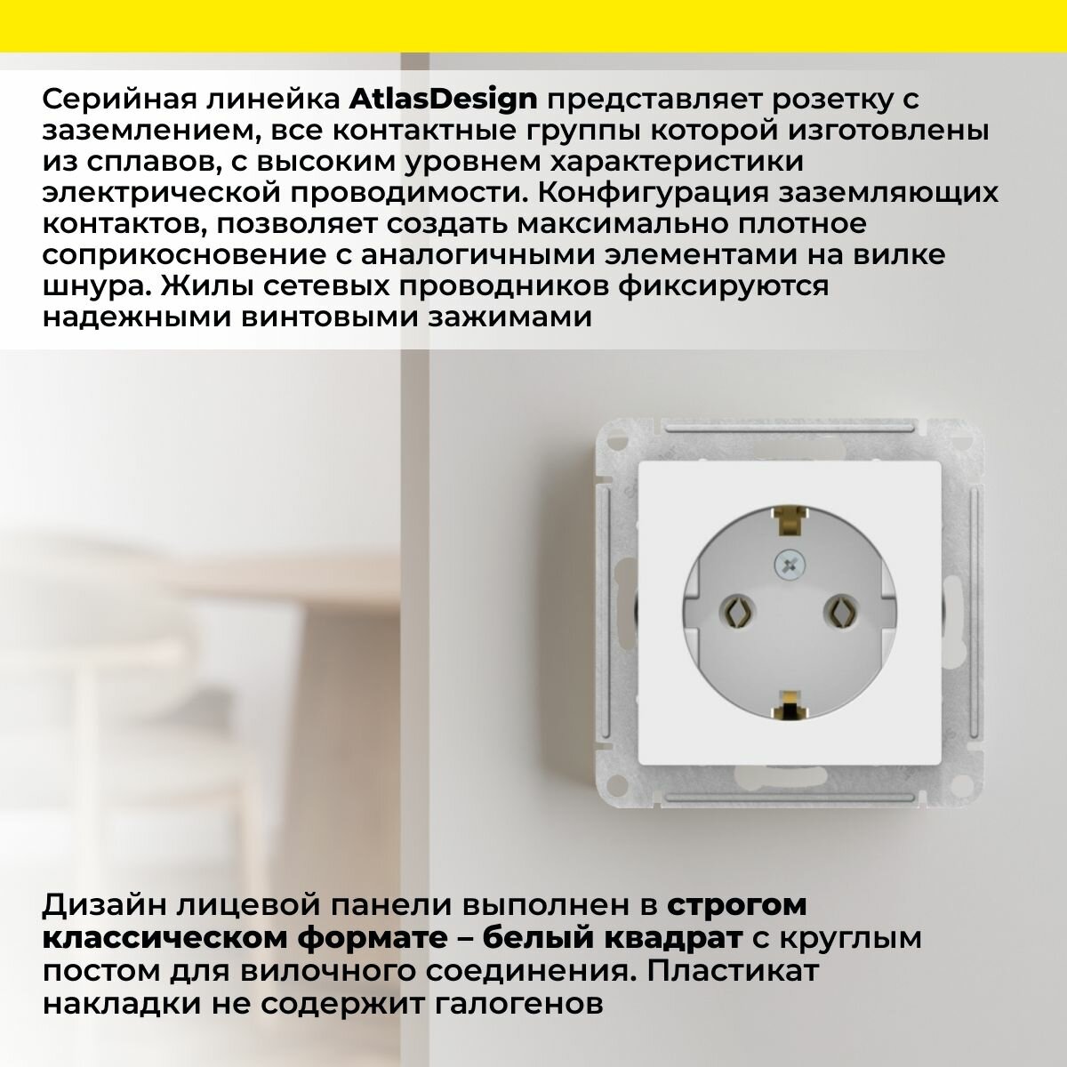 Розетка ATLASDESIGN, скрытый монтаж, с заземлением, белый | код. ATN000143 | Schneider Electric (4шт. в упак.)