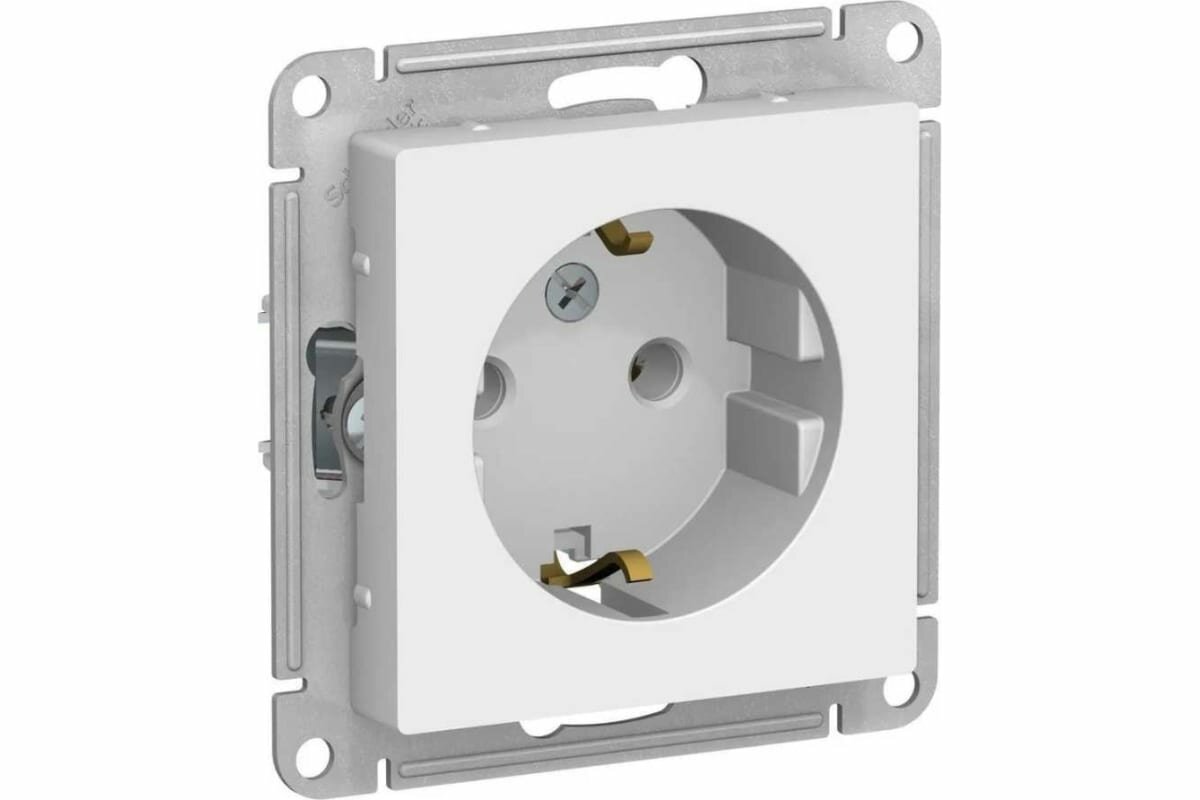 Купить Механизм розетки Systeme Electric 1-м СП ATLAS DESIGN с заземлением 16А белый ATN000143