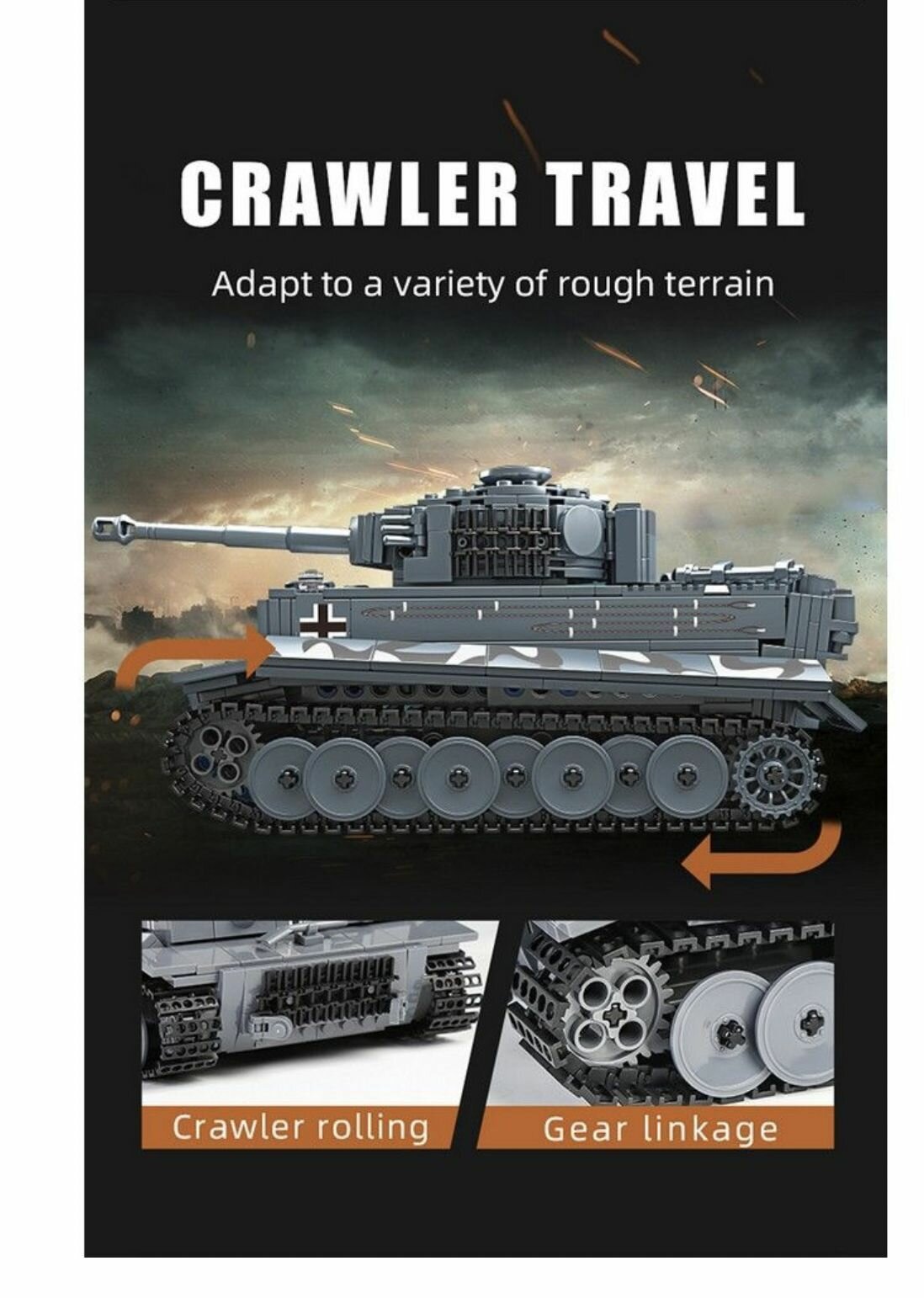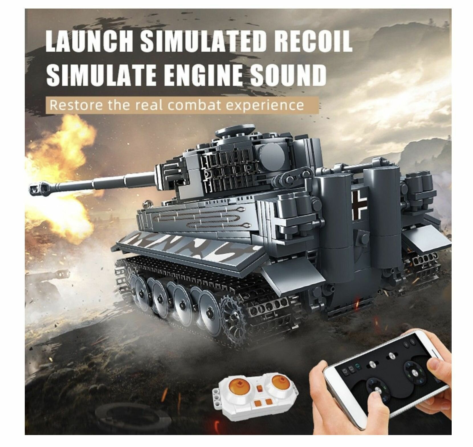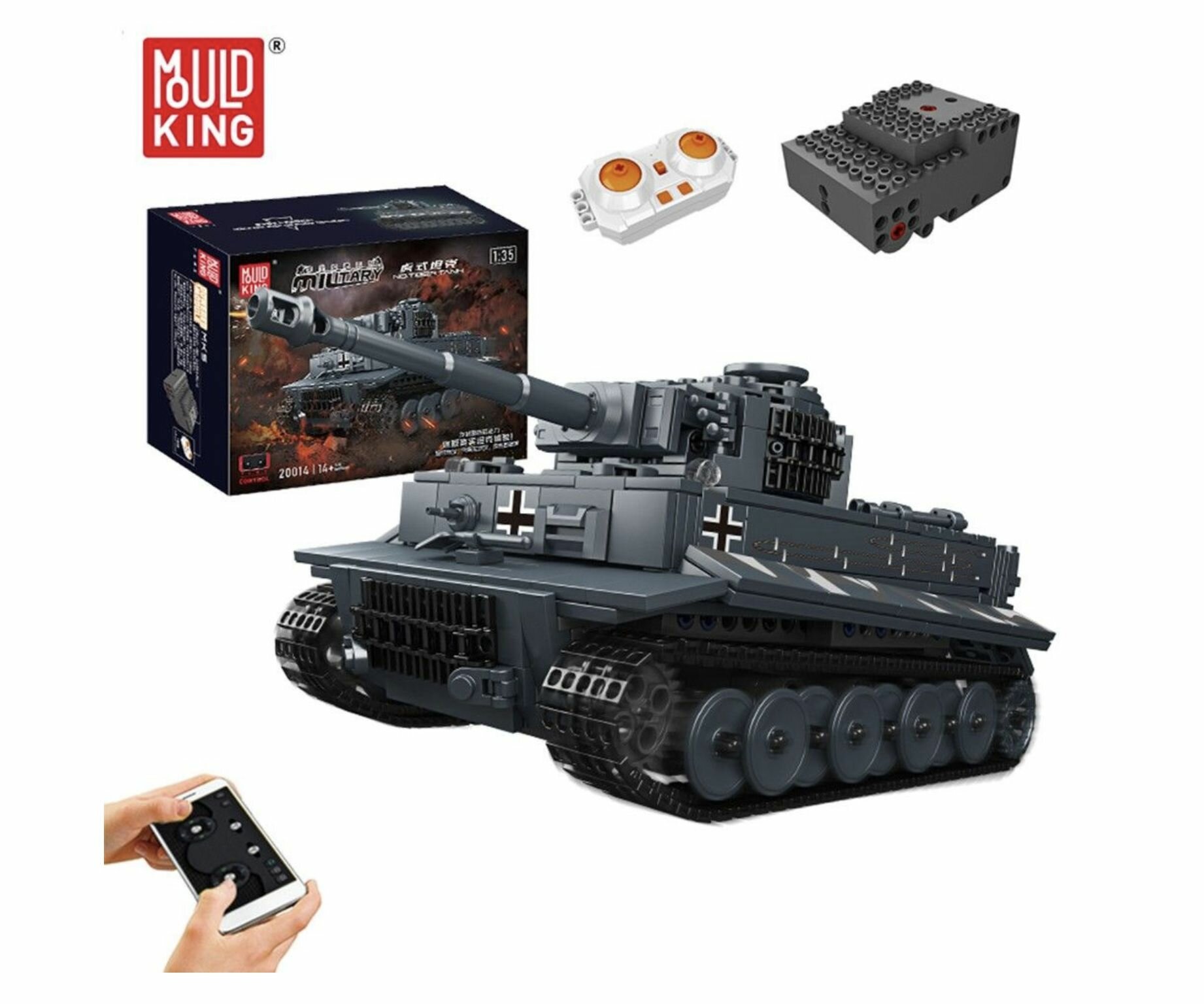 Купить Конструктор танк на радиоуправлении MOULD KING 20014 Танк Тигр с ДУ 800 деталей. Развивающий конструктор для мальчиков 6+