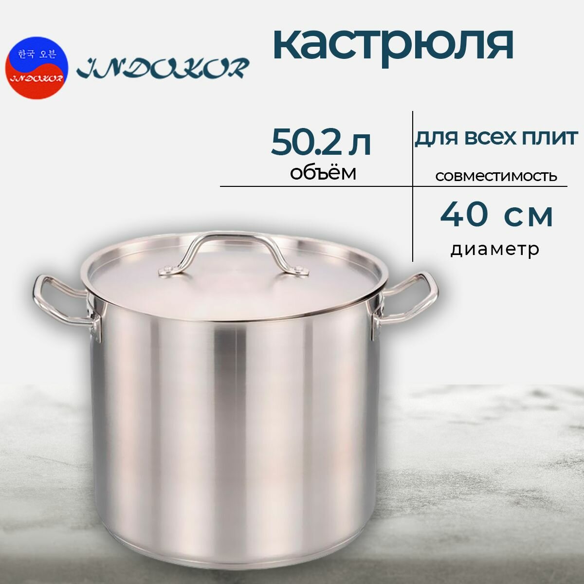 Кастрюля INDOKOR 101307 из нержавеющей стали с крышкой, 50 л, 40х40 см