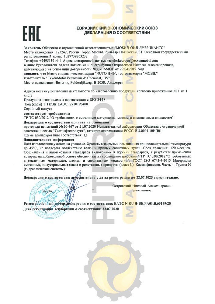 Mobil1 MOBIL Масло NUTO H 46, 20L