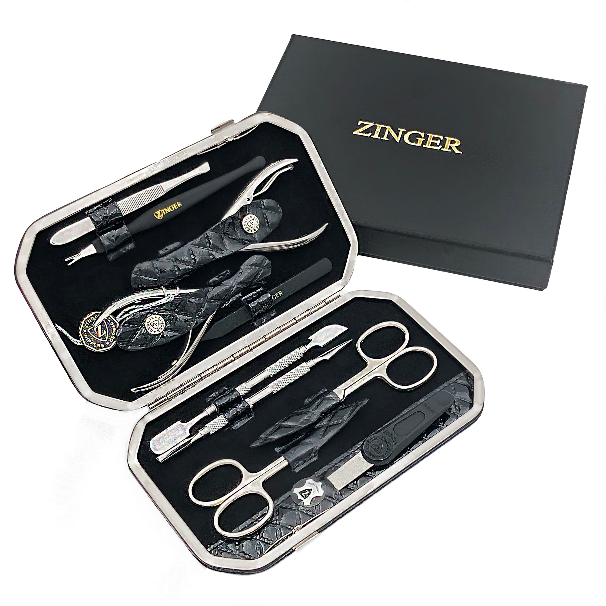 Маникюрный набор MSFE-804-3 S, ZINGER, 10 предметов, цвет черный крокодил