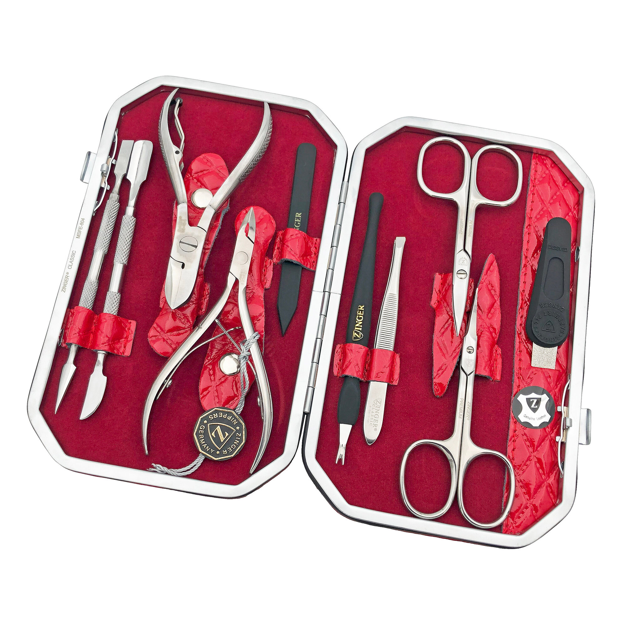 Маникюрный набор MSFE-804-S, ZINGER, 10 предметов, красный крокодил