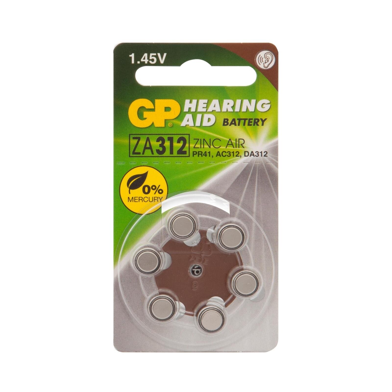 GP Батарейка цинковая GP, ZA312 (PR41)-6BL, для слуховых аппаратов, 1.4В, блистер, 6 шт.