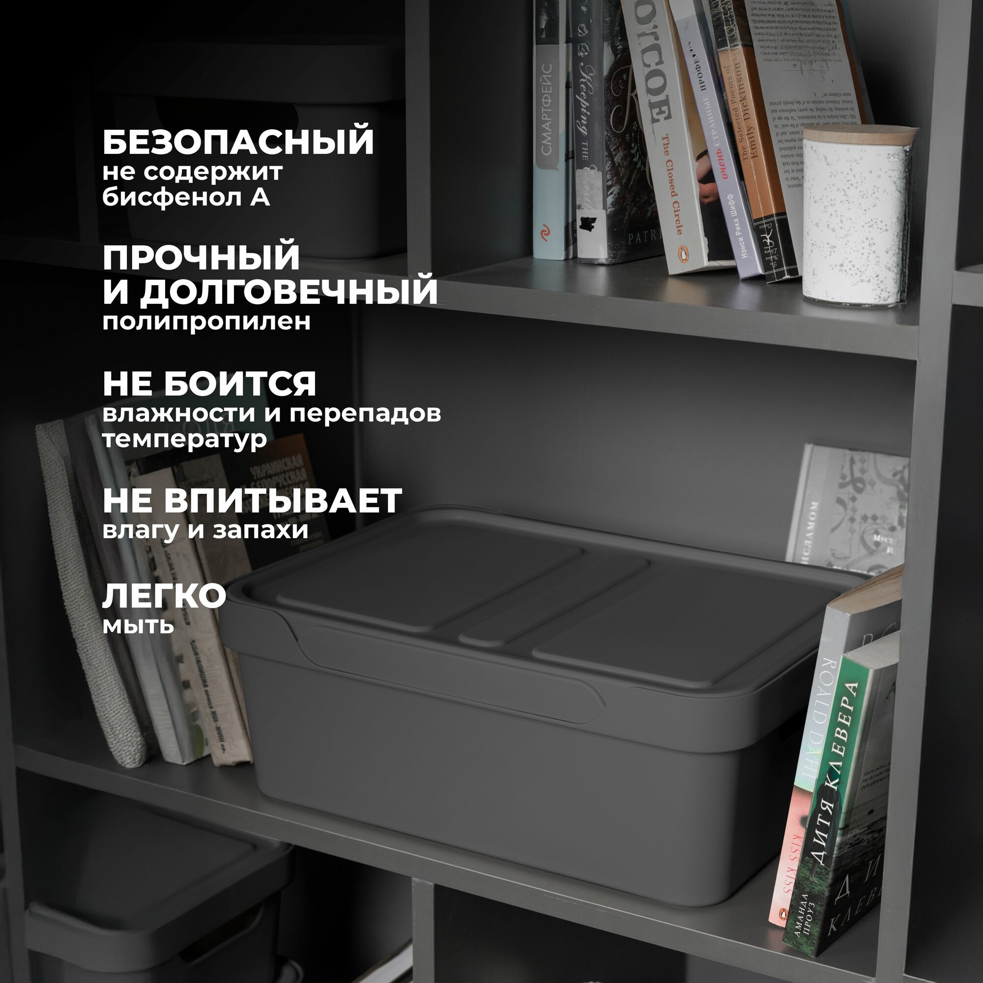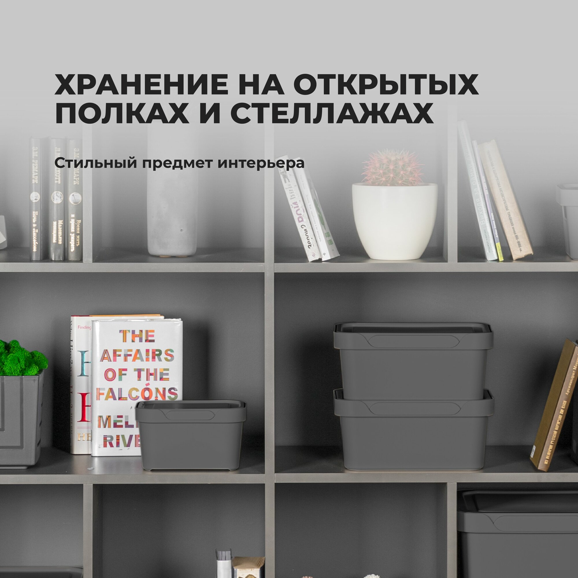 Ящик для хранения Бытпласт "Luxe", с крышкой, универсальный, 380х276х140 мм, 12 л, серый