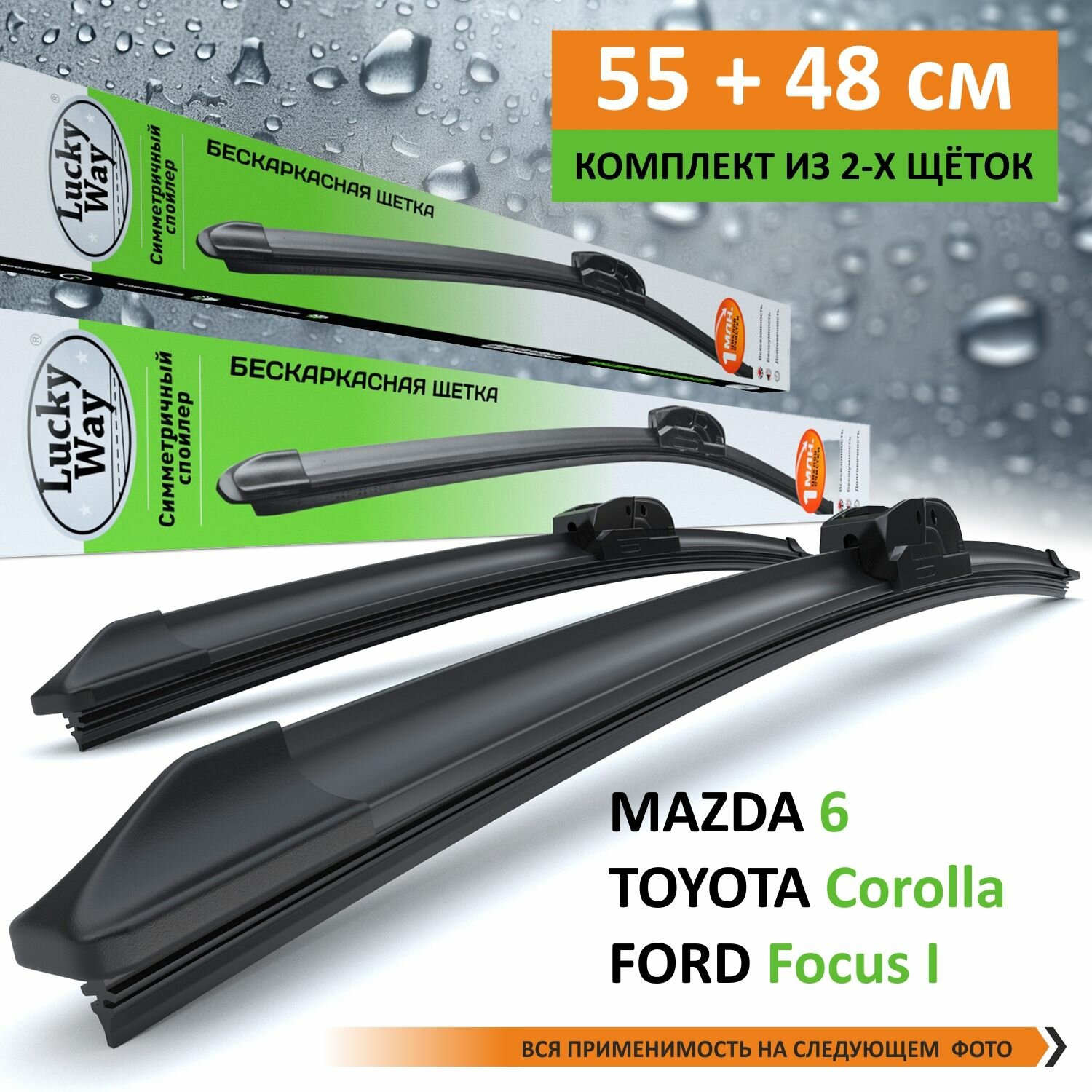 2 Щетки стеклоочистителя в комплекте (55+48 см), Дворники для автомобиля LuckyWay для MAZDA 6 02-07;TOYOTA Corolla 00-08;FORD Focus I 98-05;MITSUBISHI Outlander 03-07;CHEVROLET Lacetti 05-13