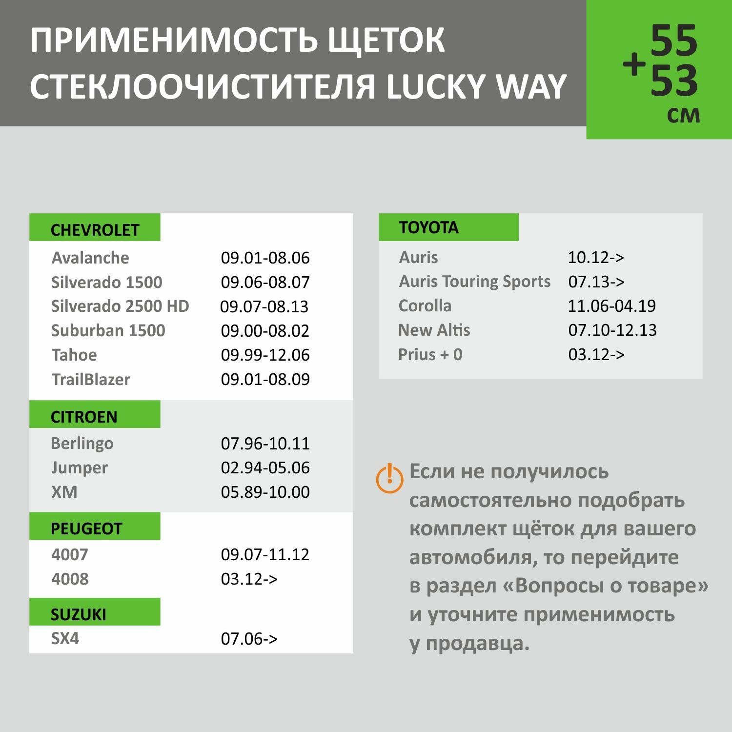 2 щетки стеклоочистителя /дворники для автомобиля/ LuckyWay (55см+53см) GAZ Gazelle Next (04.13-Н.В.) LAND ROVER Discovery IV (09-17) TOYOTA Land Cruiser (02-09)