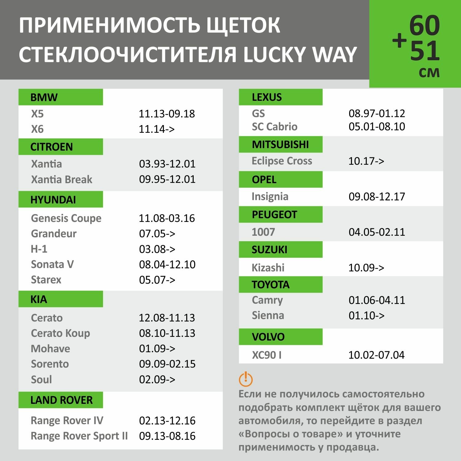Сохранить2 Щетки стеклоочистителя в комплекте (60+51 см), Дворники для автомобиля LuckyWay для BMW X5 13-18 X6; HYUNDAI H-1 08-Н. В; KIA Sorento 09-15, Mohave 09-20, Soul 09-Н. В; TOYOTA Camry 06-11 интересное: