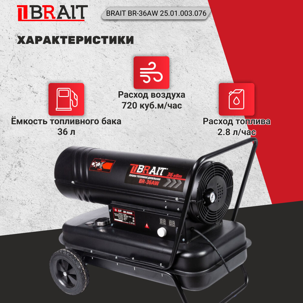 Тепловая пушка дизельная прямого нагрева Brait BR-36АW 25.01.003.076 интересное: