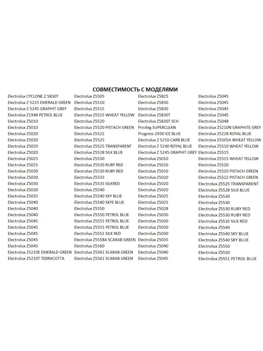 | Производитель совместимого пылесоса | AEG, Electrolux, Zanussi |