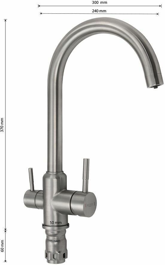 Смеситель кухонный С-образный излив , шаровый , с двойным выпуском воды для фильтра, из нержавеющей стали