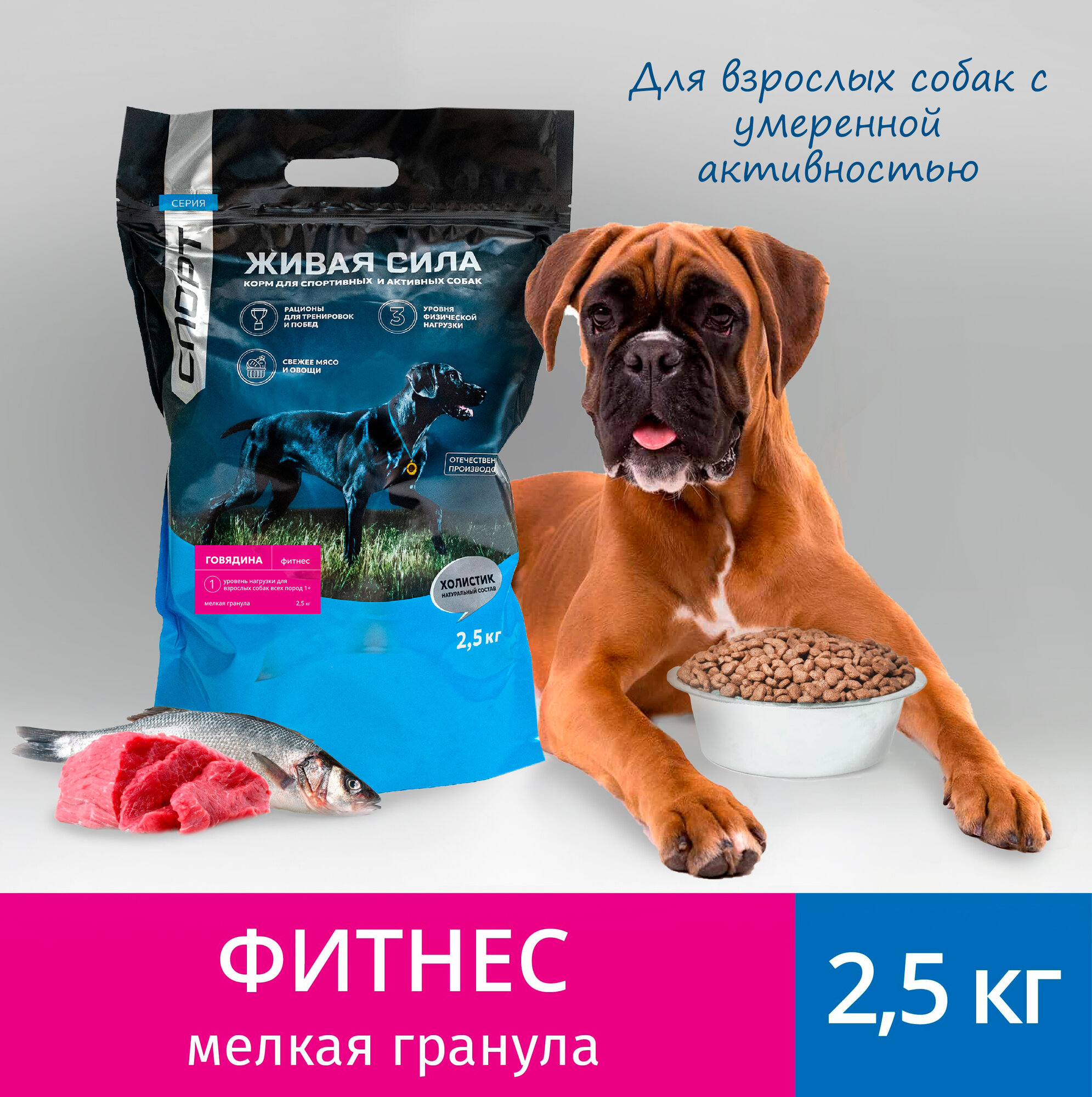 Живая сила Спорт, Фитнес корм для собак всех пород для хорошей физической формы с говядиной, Мелкая гранула (2,5 кг)