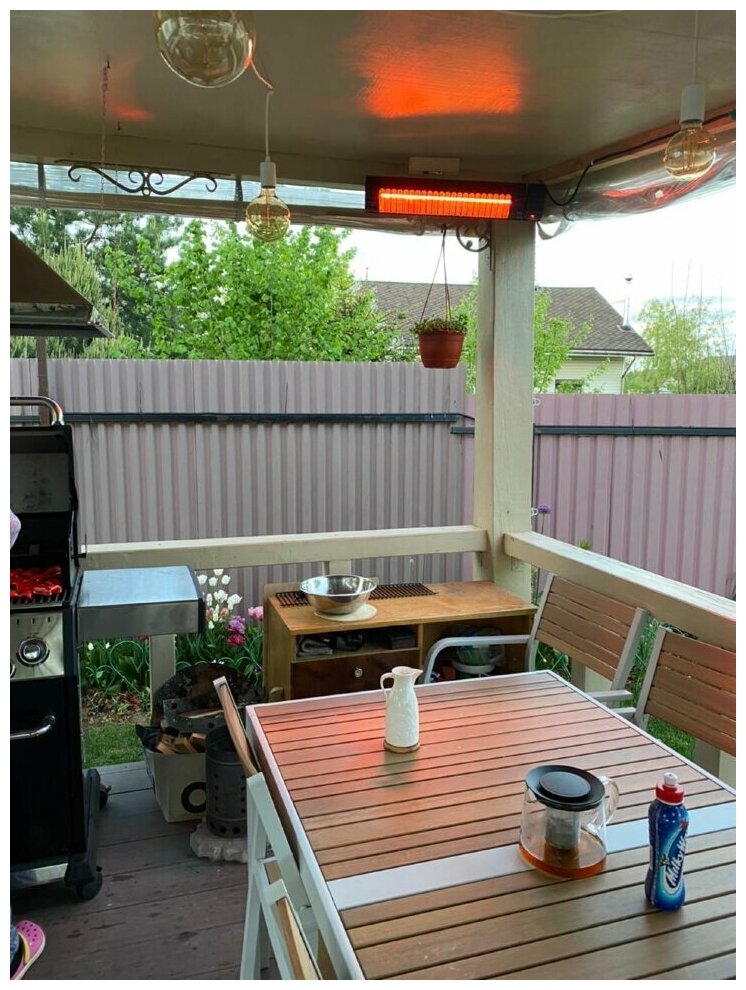 | Отзыв: | Покупали для террасы нашей дачи, со своими функциями справляется, греет хорошо. Сделано качественно, придраться не к чему (влагозащищенный алюминиевый корпус), надеемся на долгий срок службы. |