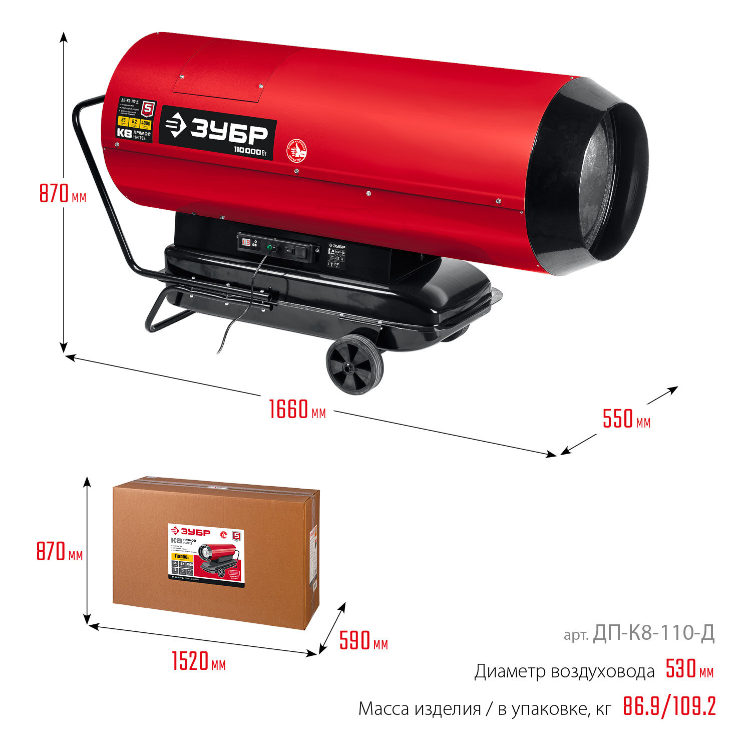 Купить Пушка дизельная тепловая ЗУБР 110 кВт, прямой нагрев