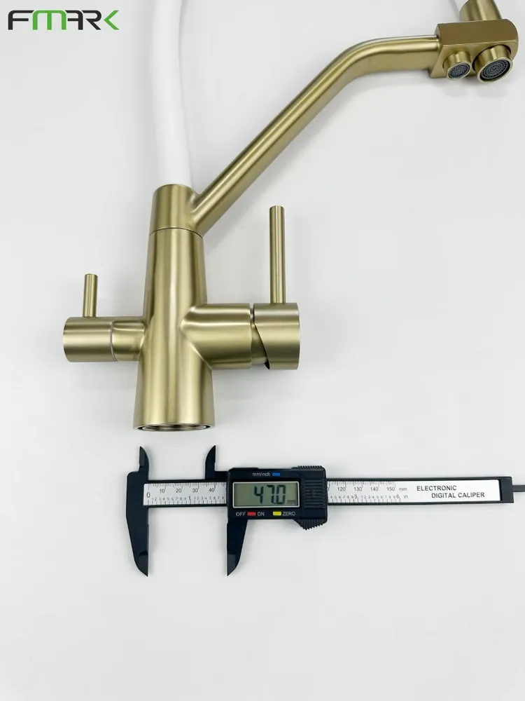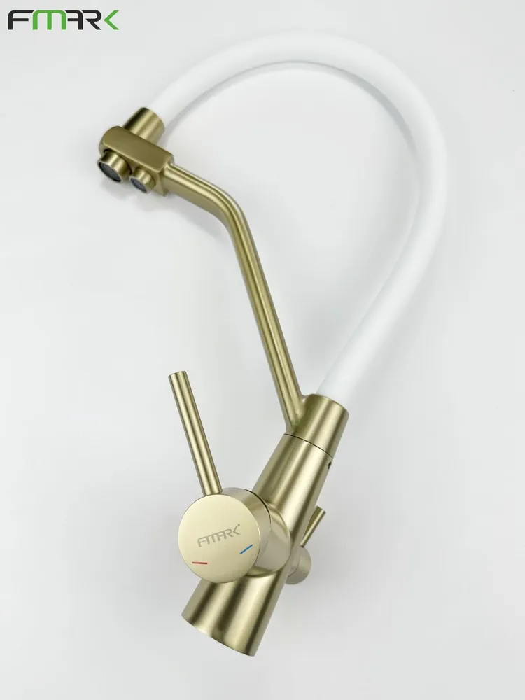 Купить Смеситель под фильтр Fmark FS0662-C02, для кухни, гибкий, нержавеющая сталь, бронза/белый