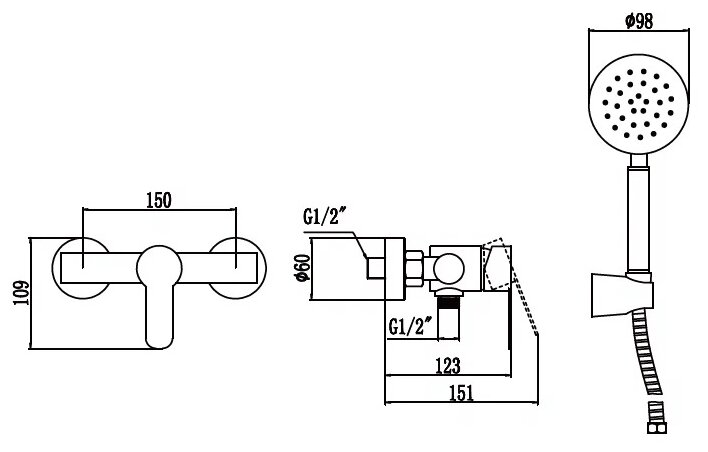 | Комплектация | Смеситель / шланг для душа / ручной душ / держатель для душа настенный ABS-пластик / отражатели - 1 пара / эксцентрики - 1 пара |
