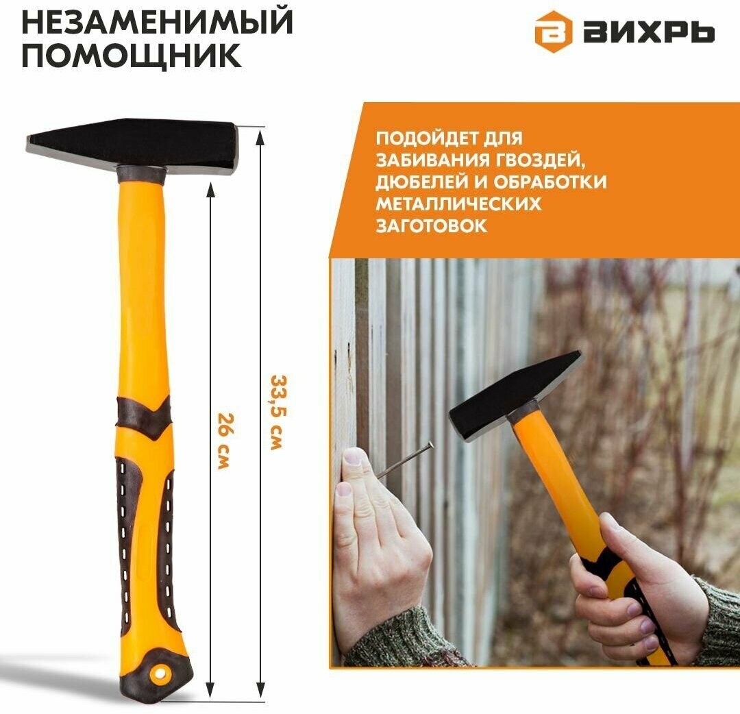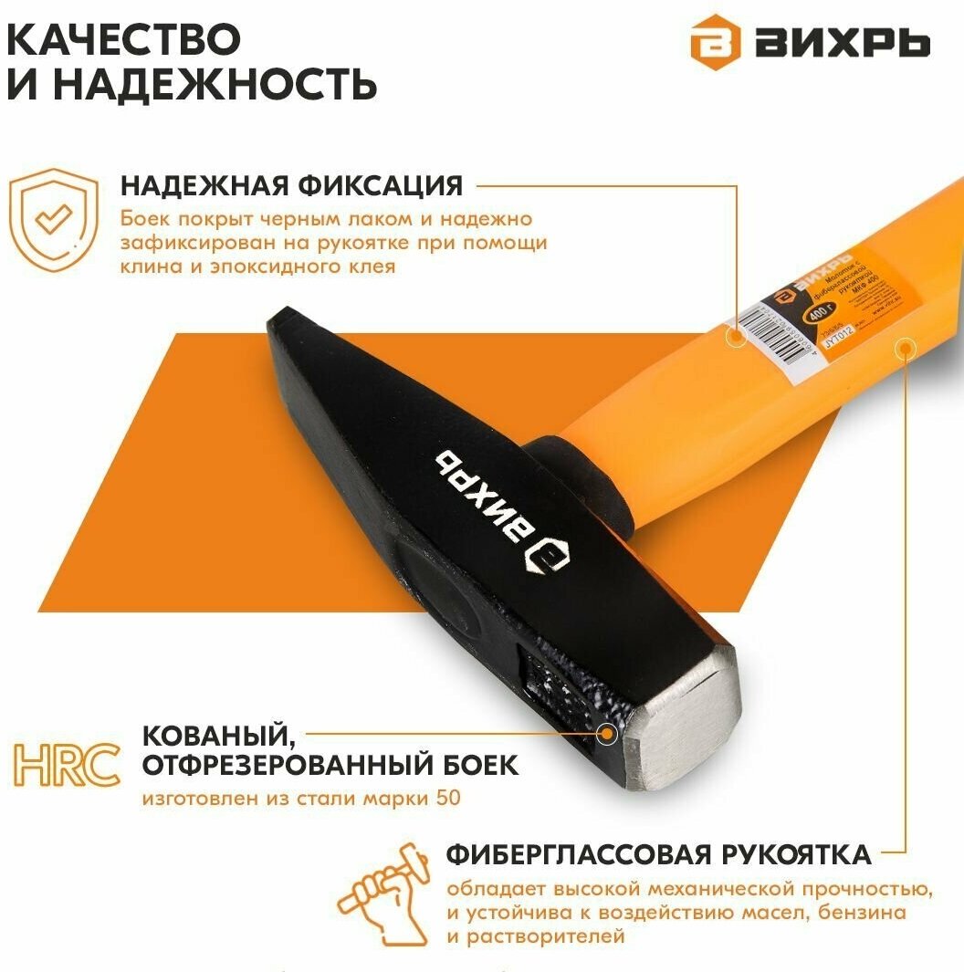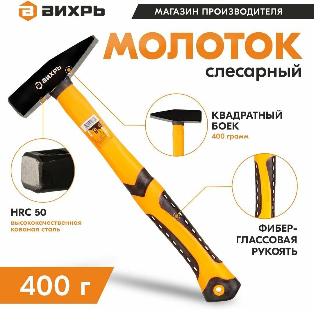 Молоток 400гр. Квадратный боёк, фиберглассовая двухкомпонентная ручка Вихрь интересное: