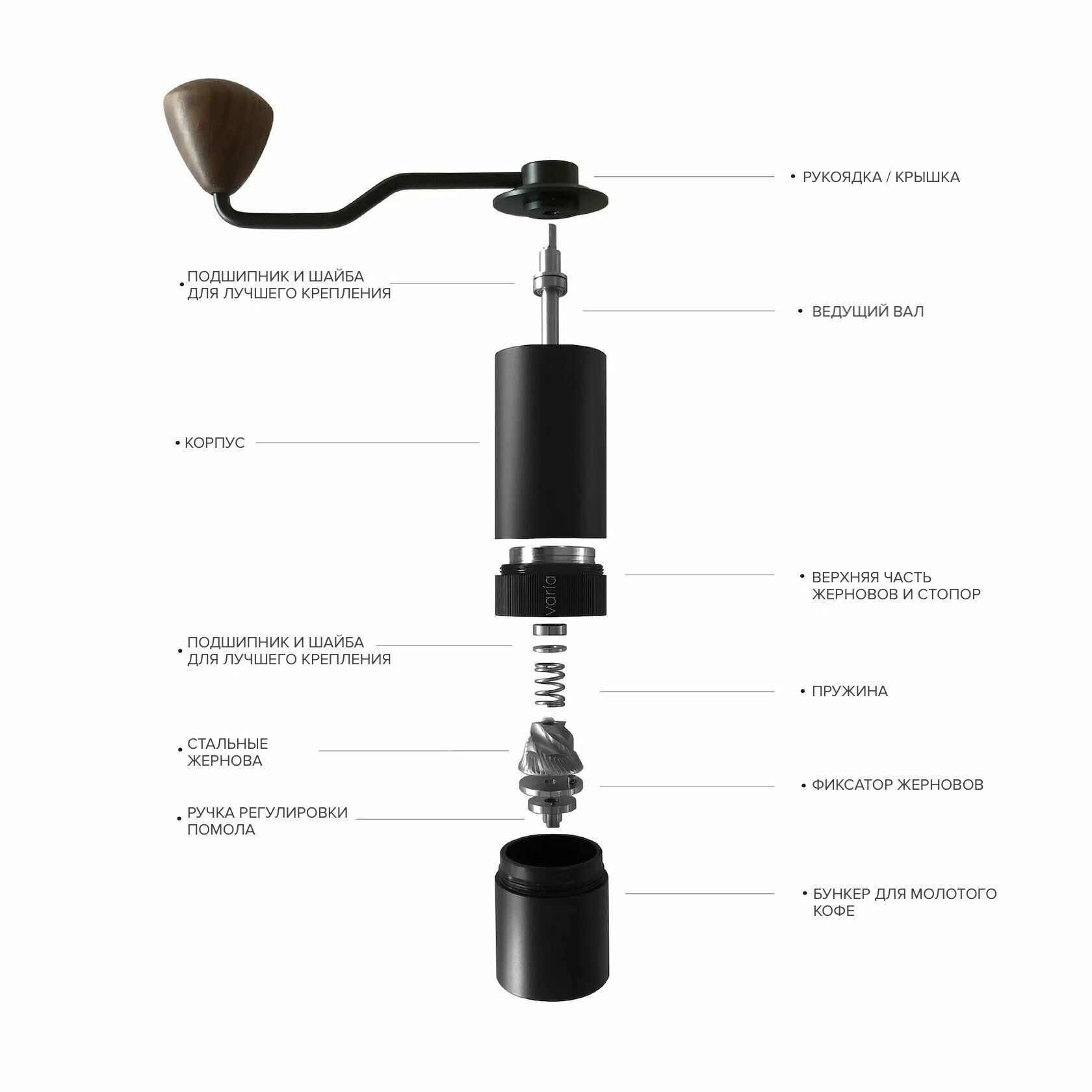 Ручная кофемолка EVO Varia черная, конические жернова, нержавеющая сталь