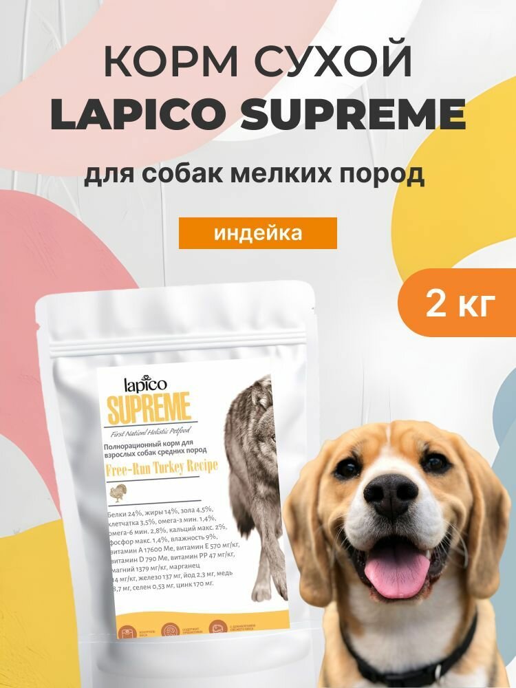 Купить Корм сухой "Lapico" Supreme (Лапико) для собак мелких пород, индейка, 2кг
