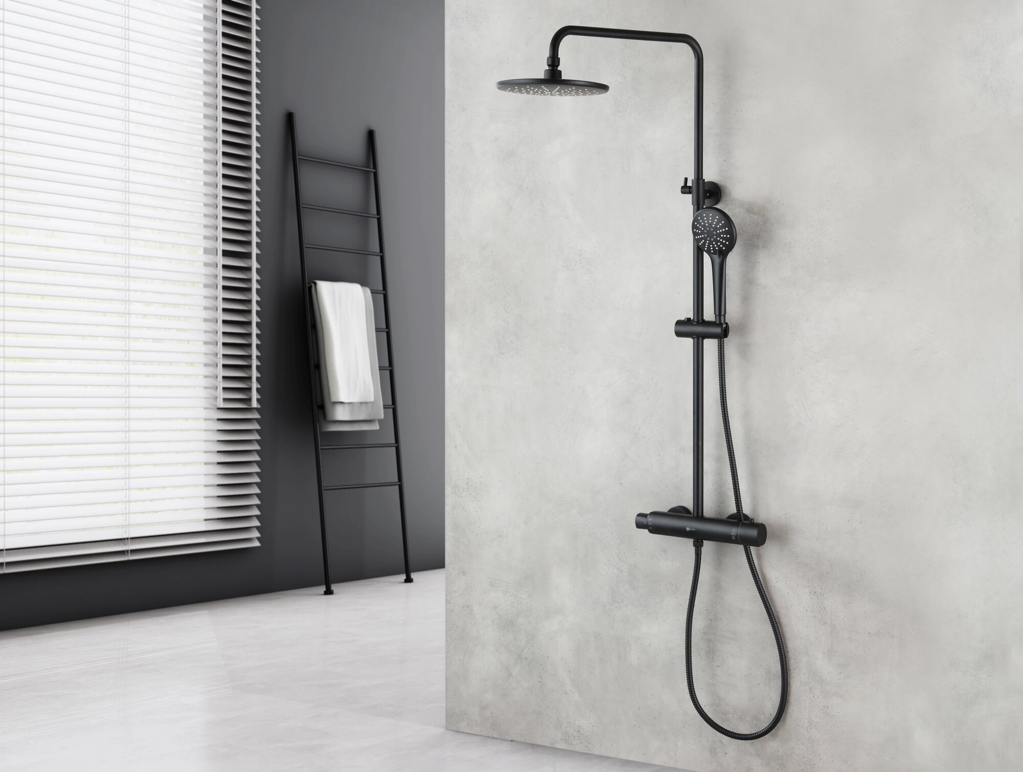Душевая система ABBER Weiss Insel AF8051B скрытого монтажа без излива, термостат, черный матовый