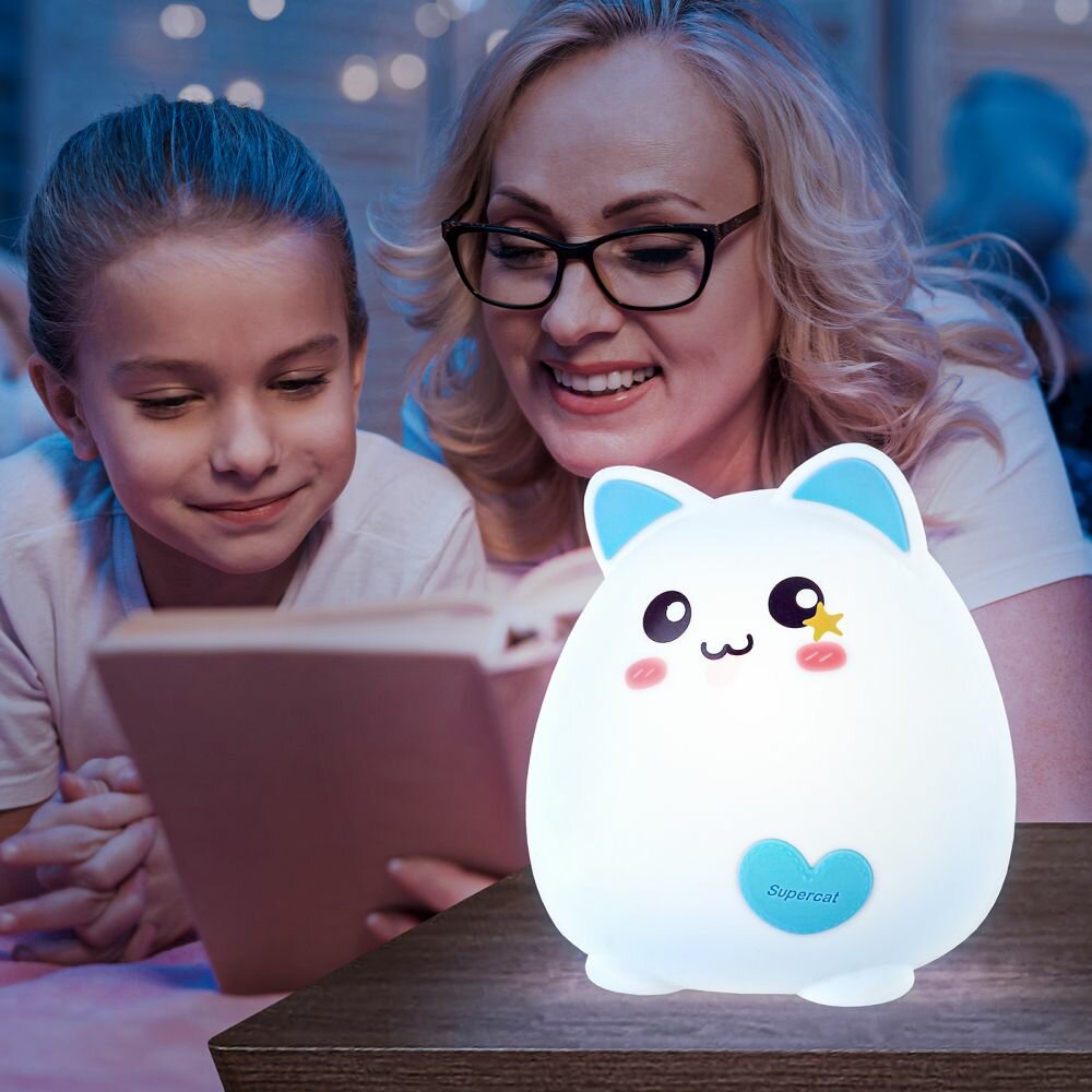 СохранитьНочник детский антистресс ЭРА NLED-414-2W-BU Кот светодиодный USB, диммер, сенсор, настольный интересное: