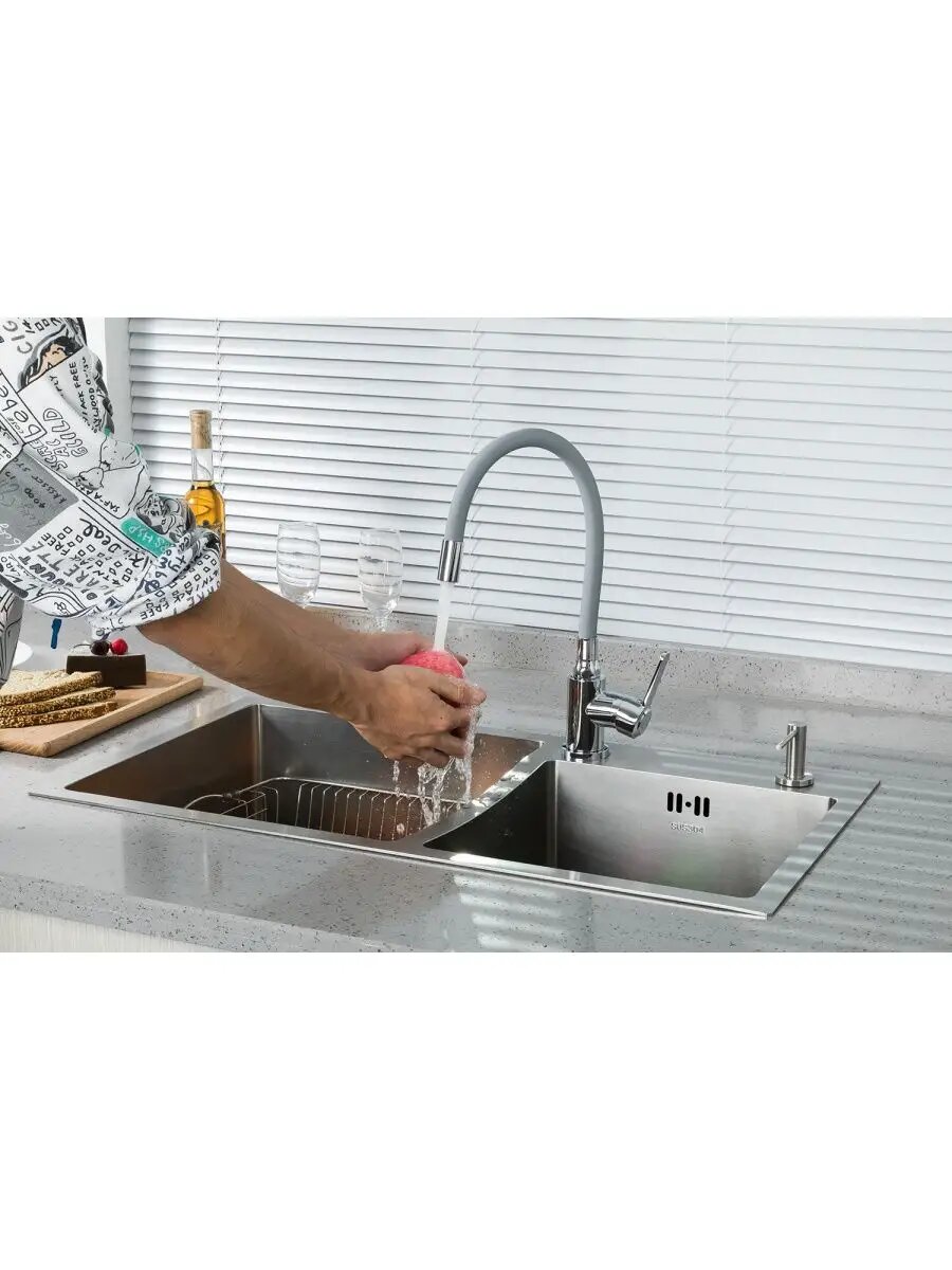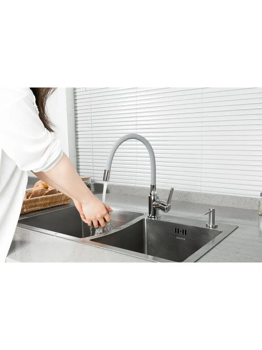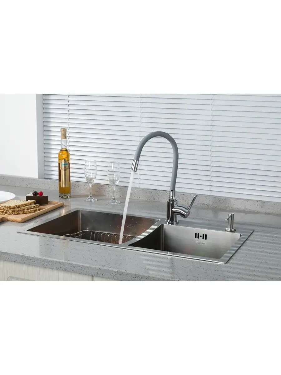 Смеситель для кухни Frud R42052-31 с гибким изливом и керамическим картриджем, серый/хром