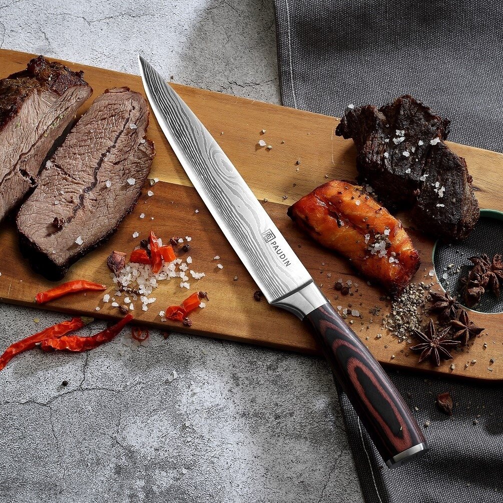 PAUDIN Pro Нож кухонный профессиональный шеф повара разделочный слайсер для мяса рыбы и овощей фруктов лезвие 20 см