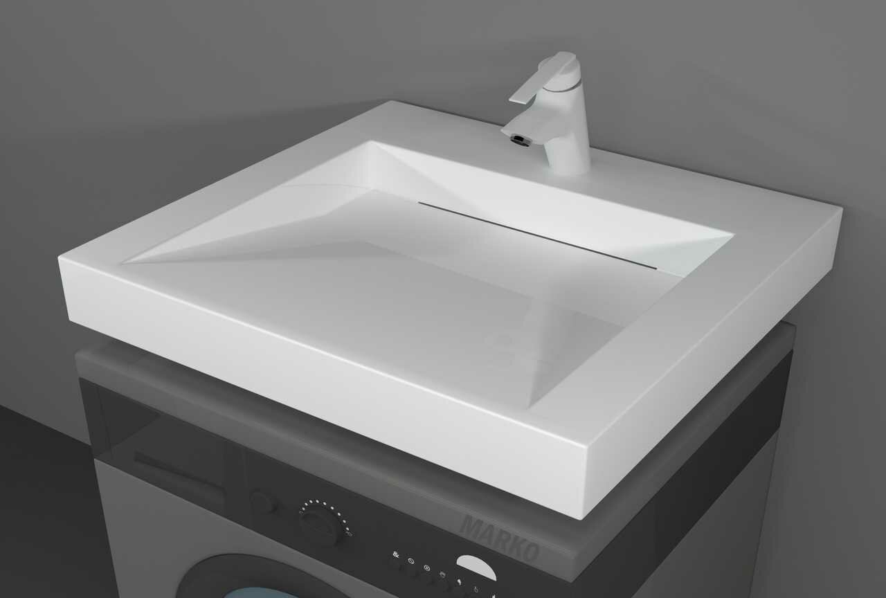 Раковина Mareon "Блюз 60", подвесная над стиральной машиной, искусственный мрамор, прямоугольная, 60x59.8x9.6см, белая интересное: