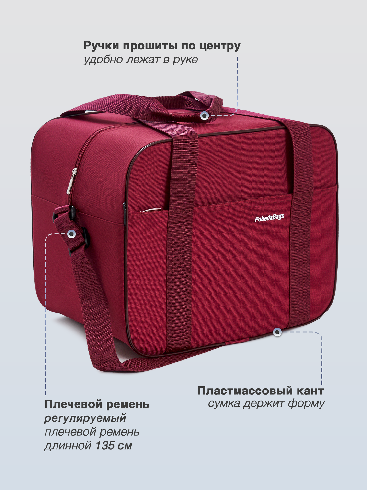 Сумка дорожная PobedaBags, 26 л, 27х30х36 см, ручная кладь, вишня интересное: