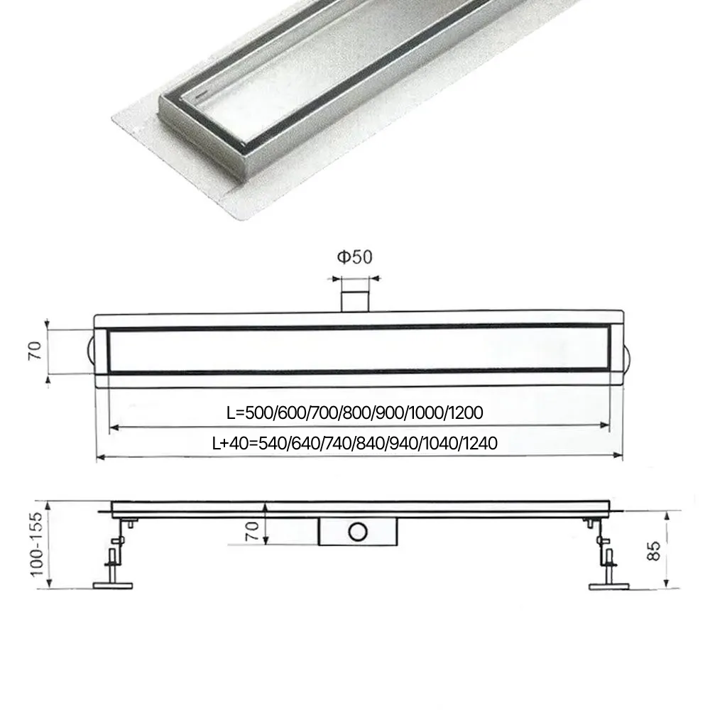 Душевой лоток с решеткой под кладку плитки защита от запаха:(сухой +гидрозатвор) (70*500мм) BAD455002