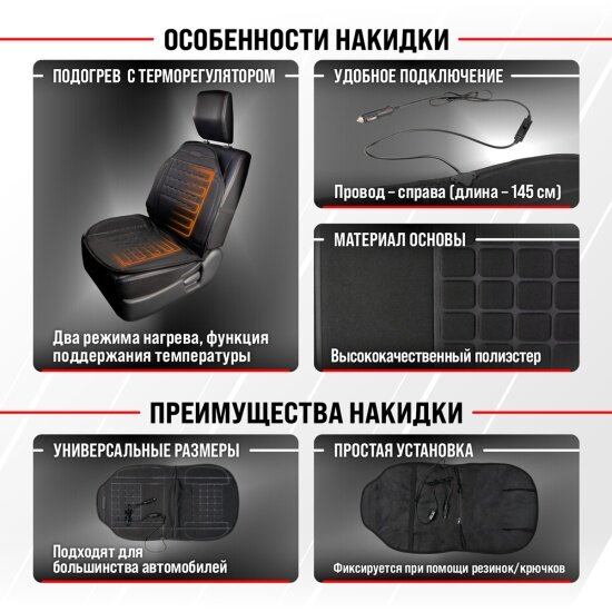 Подогрев сидений со спинкой черный полиэстер 98х52 см, с регулятором (2 режима), S02201013