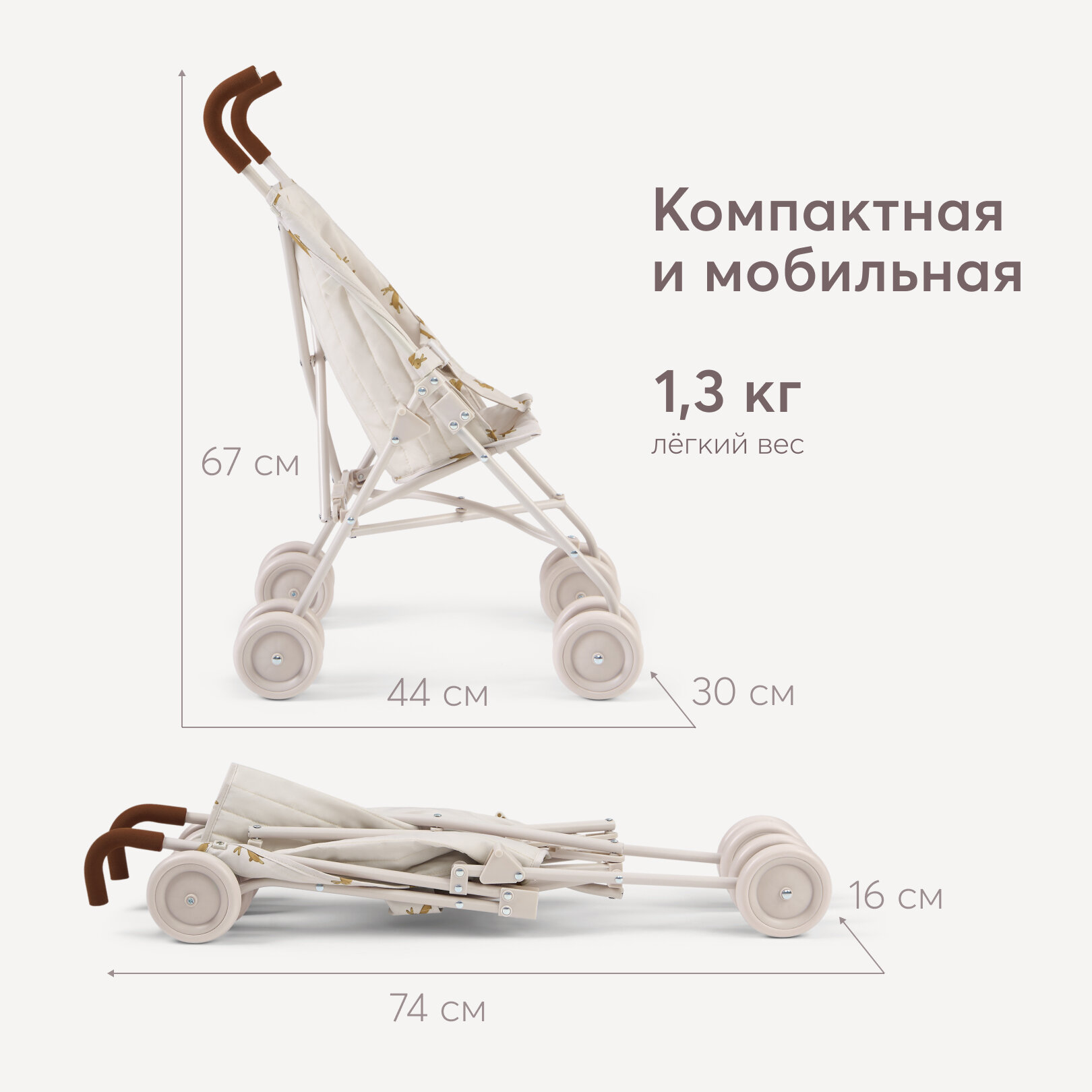331970, Коляска трость для кукол TWIGLET от Happy Baby, складная прогулочная коляска для игрушек, бежевая с кроликами интересное: