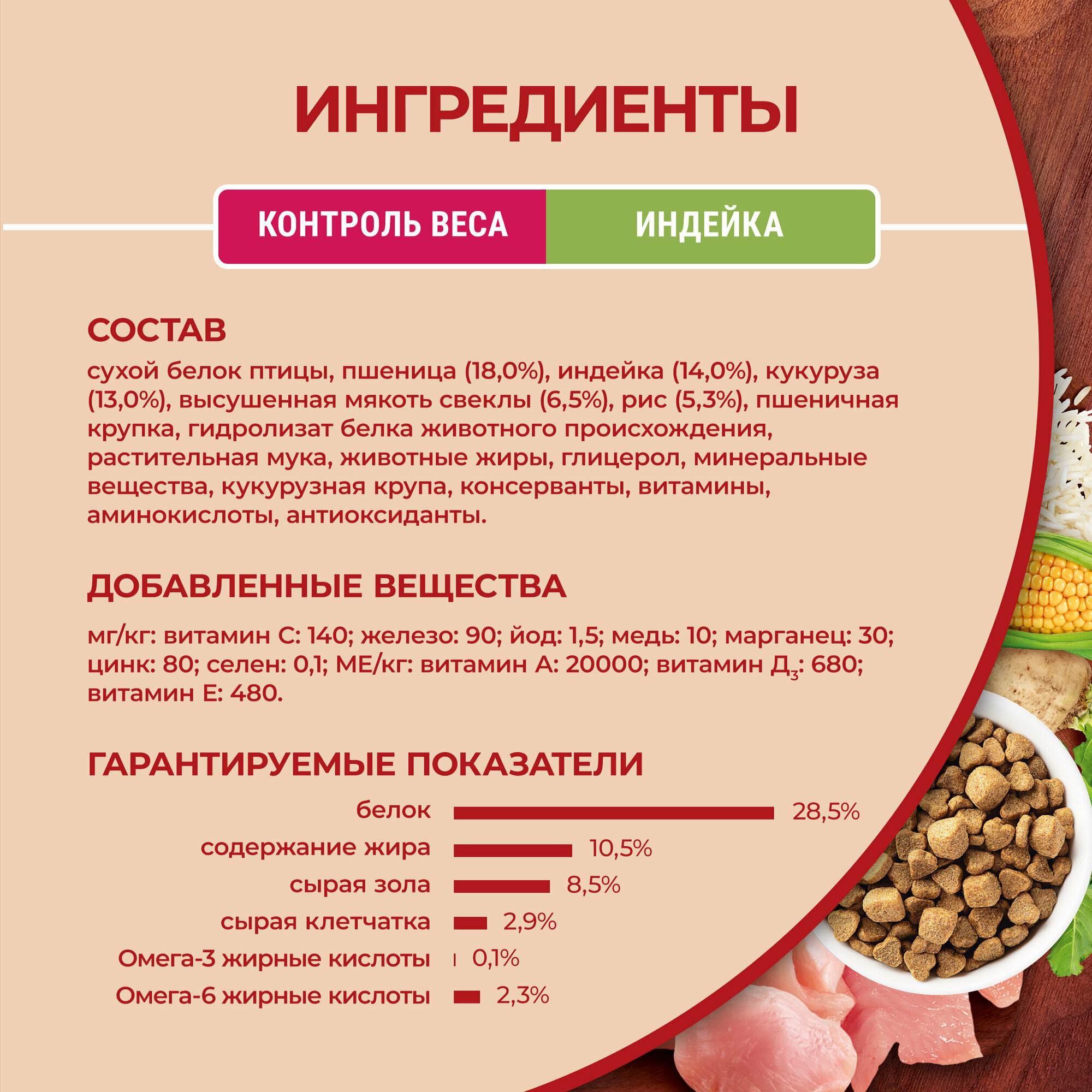 Сухой корм mini "Здоровый вес" для мелких пород, индейка/рис, 1,5 кг