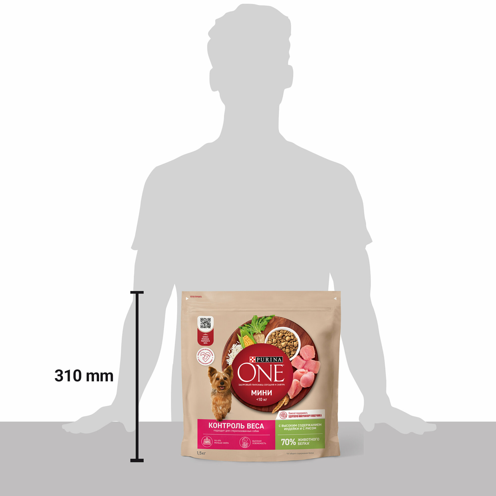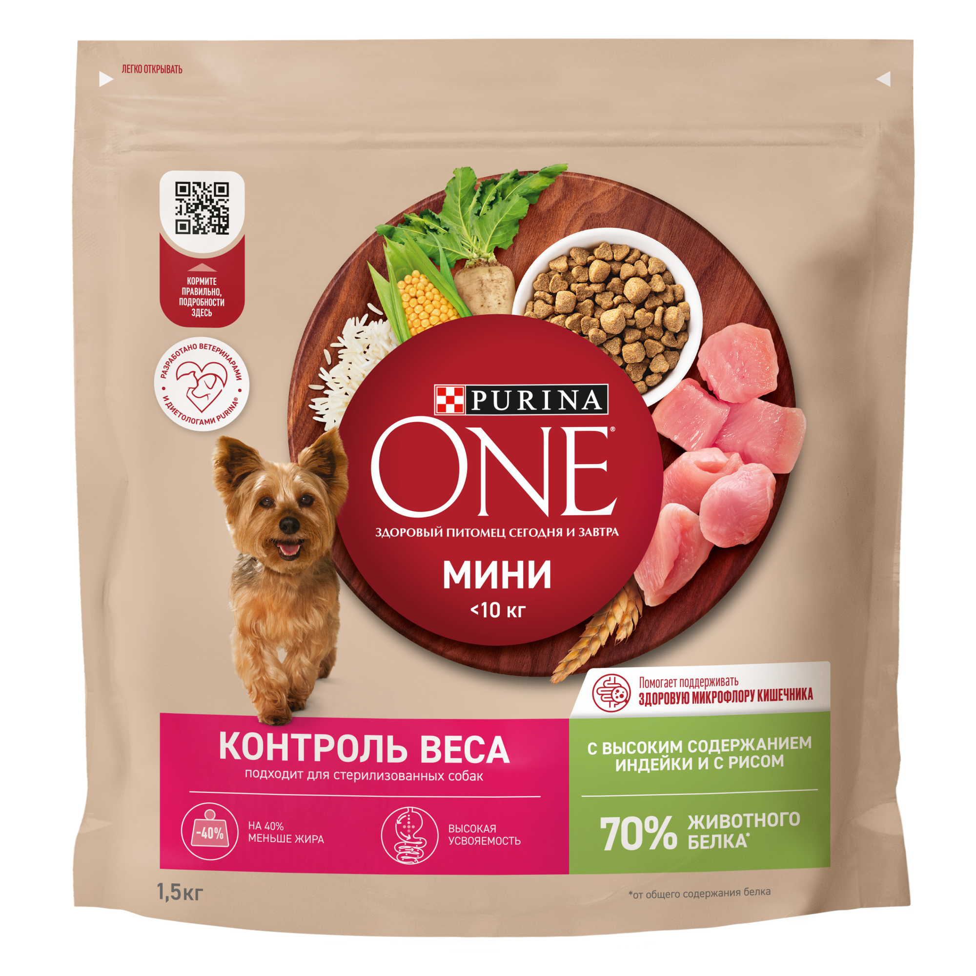 Купить PURINA ONE мини Здоровый вес 1,5 кг сухой корм для собак мелких пород, склонных к набору веса, с высоким содержанием индейки и с рисом
