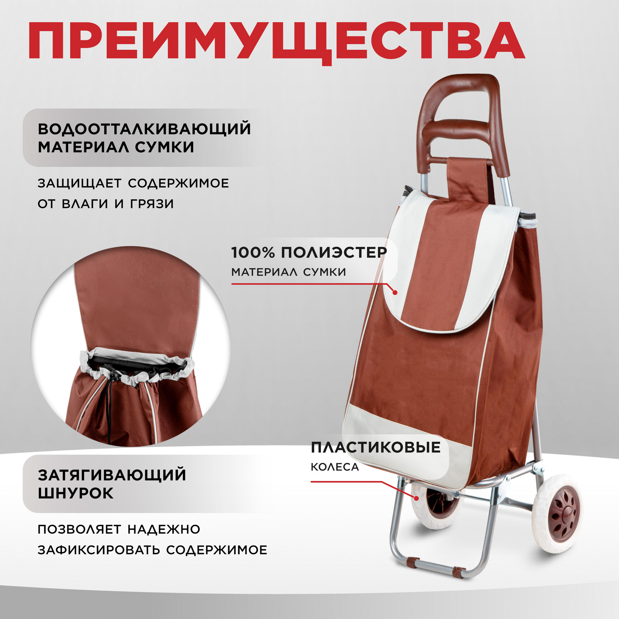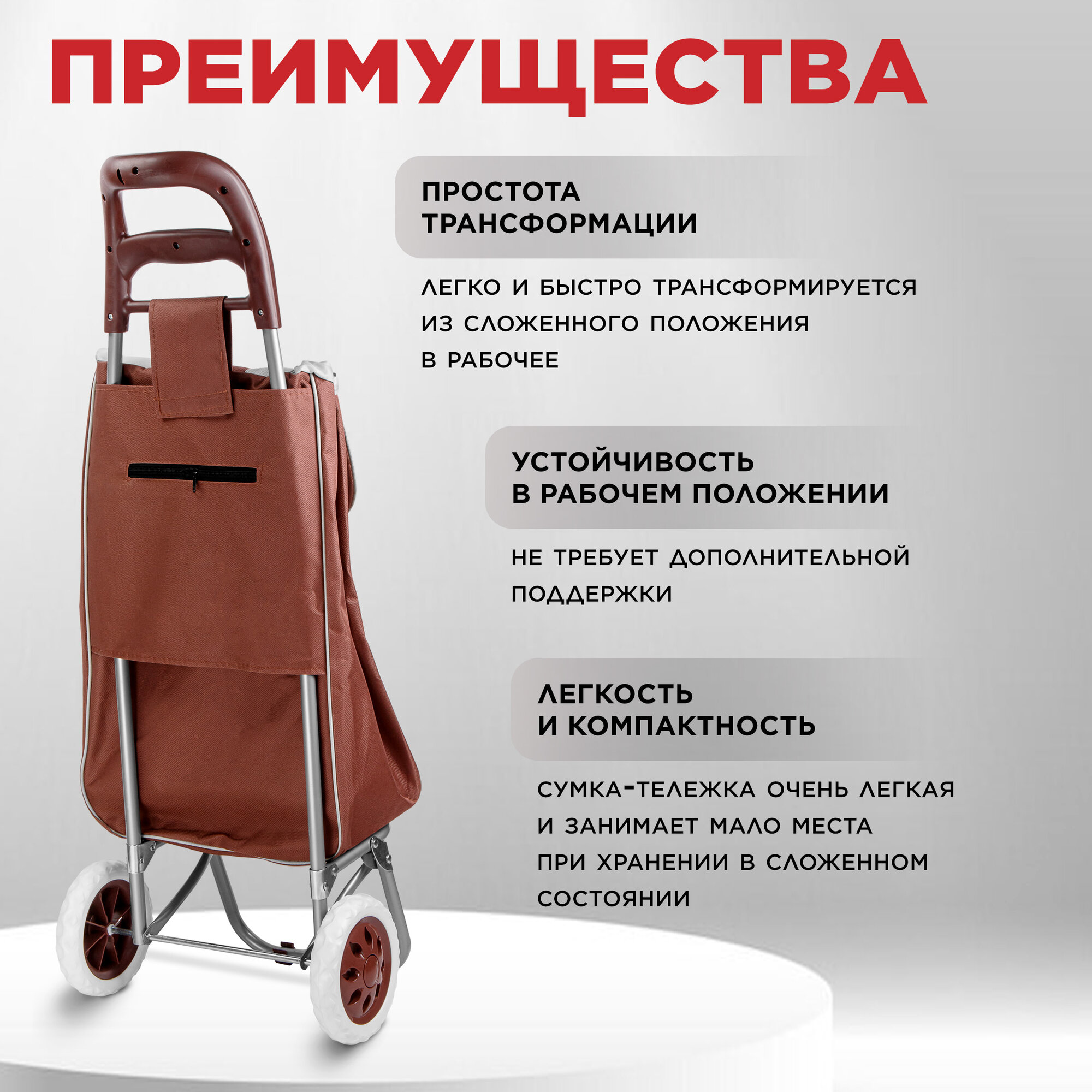 Сумка-тележка хозяйственная на колесах 30 кг, коричневая, полоска, PERFECTO LINEA (42-307023)