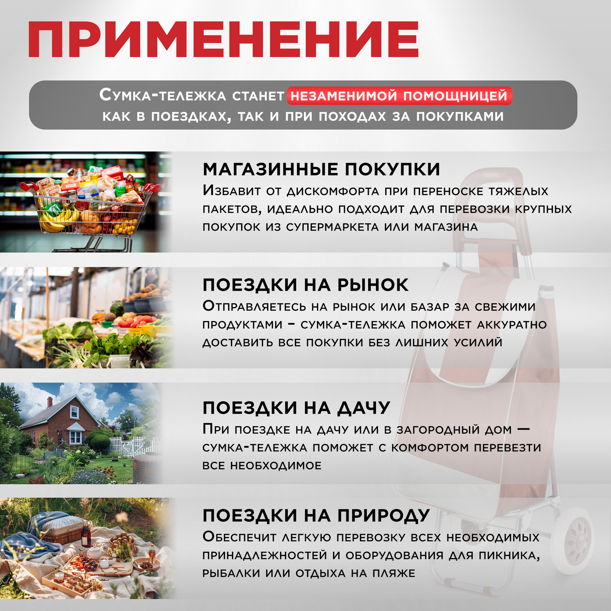 | Отзыв: | тележка требует доработки, сумка постоянно сползает и падает |