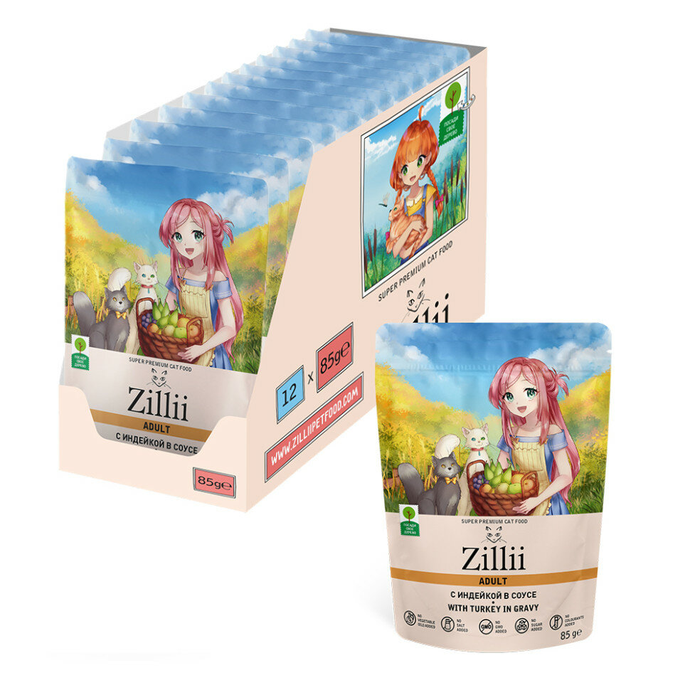 Купить Zillii Adult Cat Turkey влажный корм для взрослых кошек с индейкой в соусе, в паучах - 85 х 12 шт