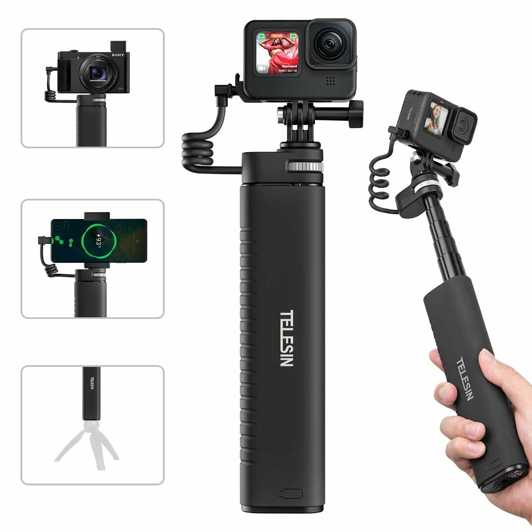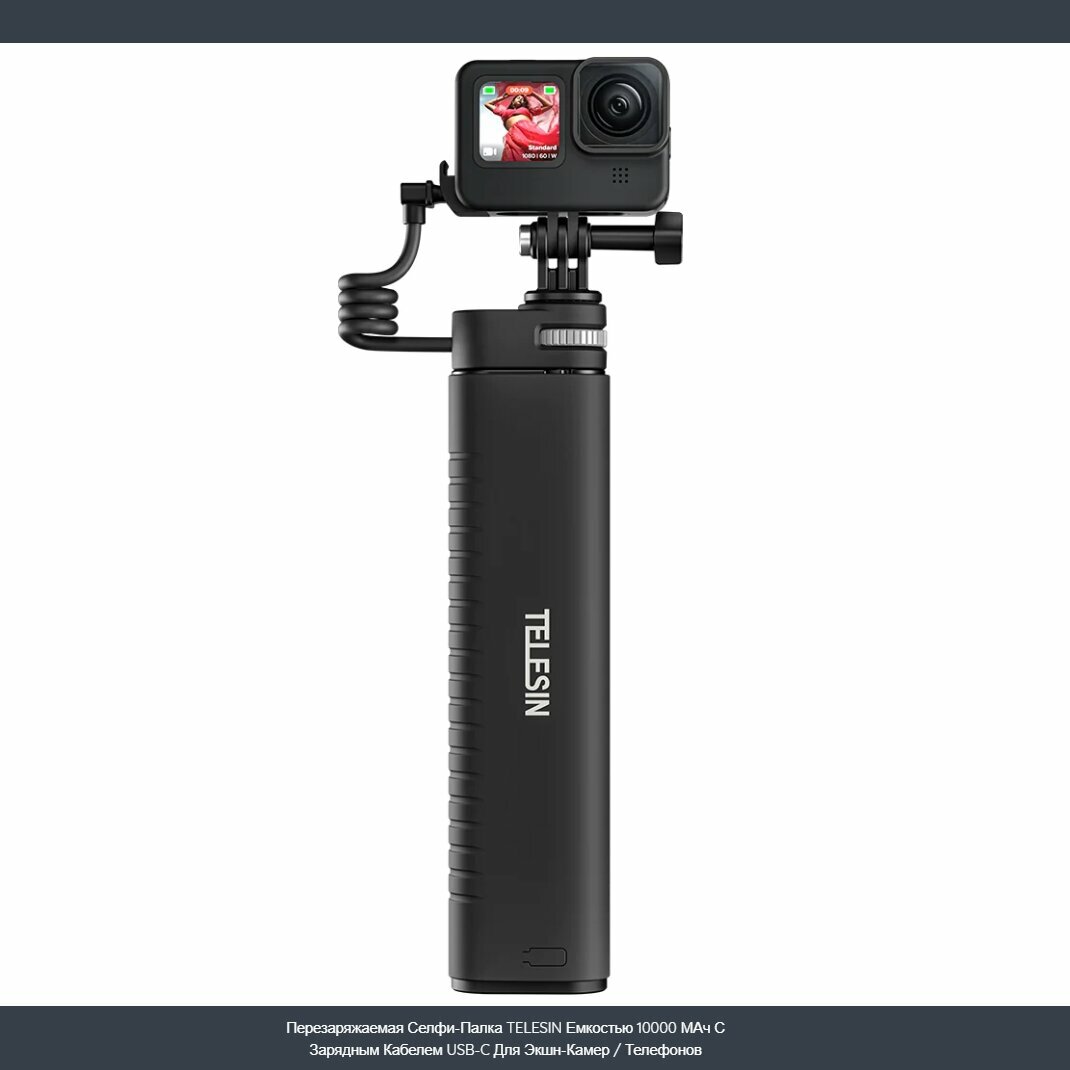 Монопод TELESIN со встроенным АКБ 10000mAh для экшн-камер и телефонов