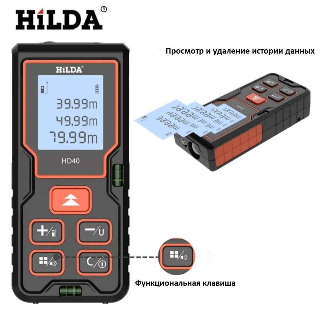 Лазерный дальномер Hilda HD-40, измерение до 40 м, автоотключение, черный интересное: