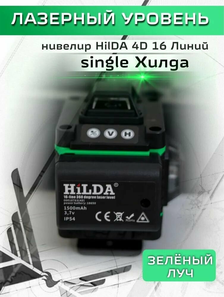 Лазерный нивелир Hilda, 4D, зеленый луч, пылевлагозащита IP54, черный интересное: