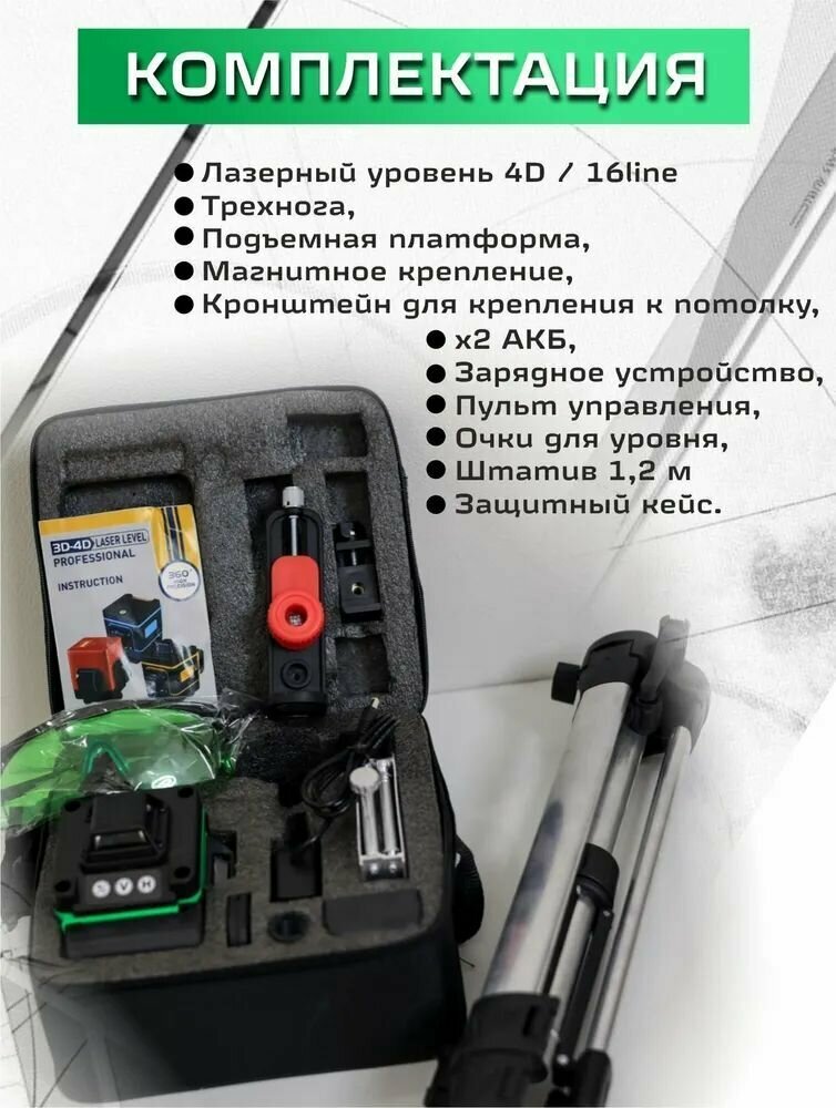 Профессиональный Лазерный уровень (нивелир) LT L16-360A 4D 16 линий.