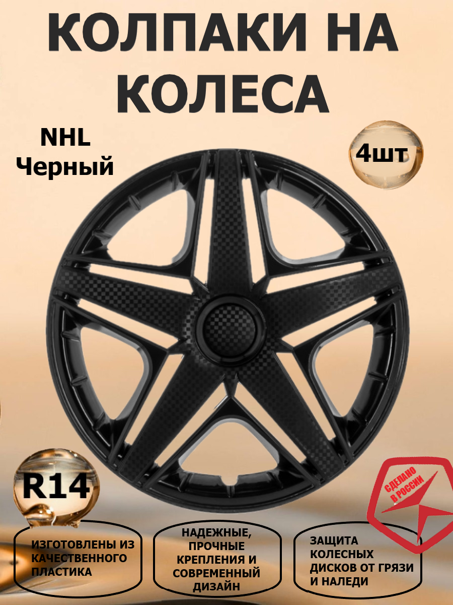 Колпаки на колеса R14 NHL, цвет черный, 4 штуки в комплекте интересное: