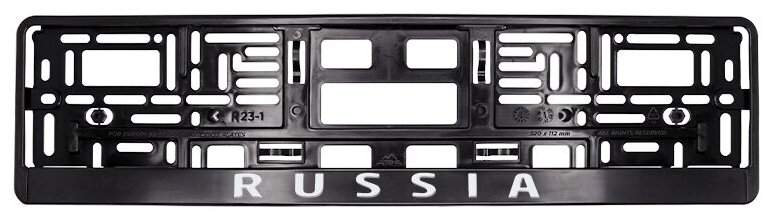 Рамка под номерной знак нижняя защёлка, шелкография "Russia" (чёрная, белая) AVS RN-06