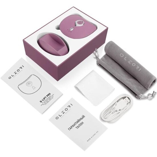 OLZORI Mассажер для лифтинга лица с микротоками, EMS токами, нагревом, микровибрациями и LED-терапией, цвет фиолетовый D–LIFT Pro-Purple